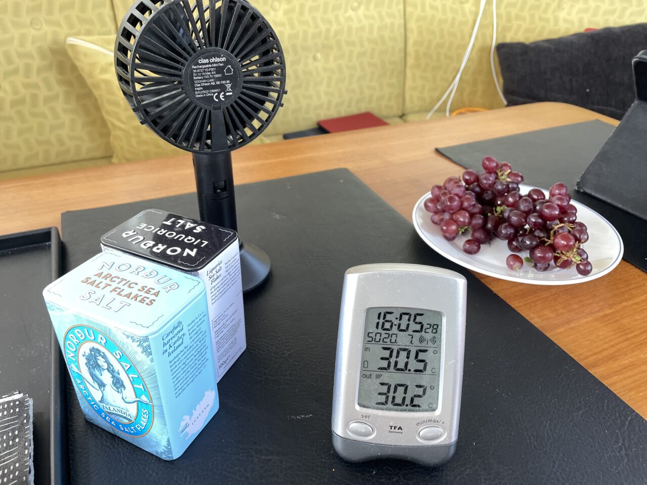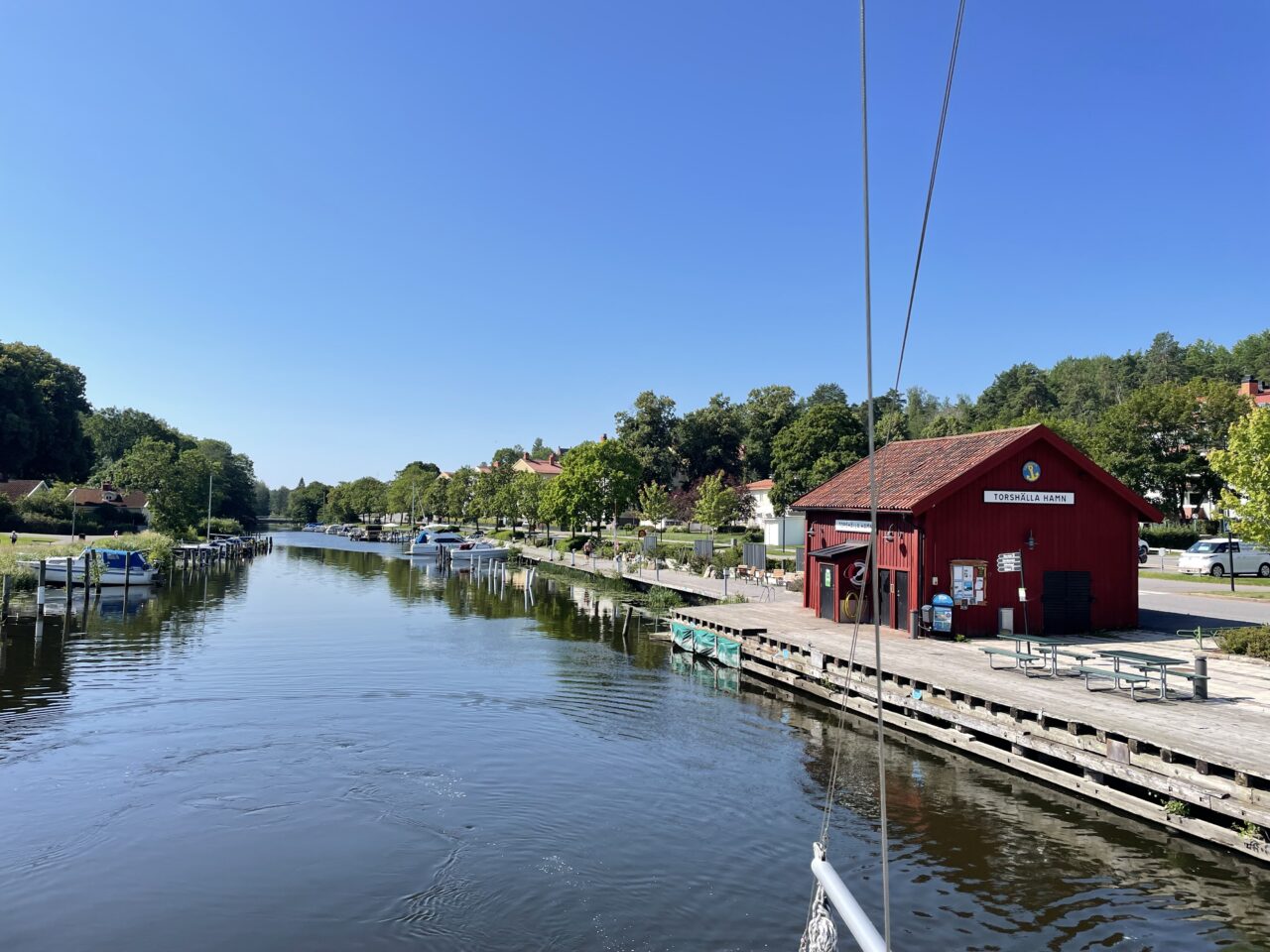 Von Västrås gings weiter nach Torschälla, einen Anleger in einem kleinen Kanal. 3 Tage waren wir die einzigen Besucher am Anleger mit eigenem Bad und Dusche. Hier trafen wir Maija und Michael, die ihr Campingmobil auf dem nahen Stellplatz parkten. Zwei sehr schöne Tage, mit viel Plaudern, Faulsein, einer kleinen Radelrunde durch die nähere Umgebung und leckerem Essen. Für große Aktivitäten war es zu heiß, wir feierten jeden Windzug.