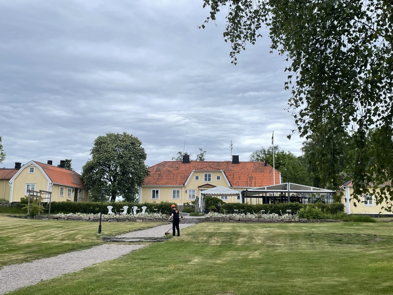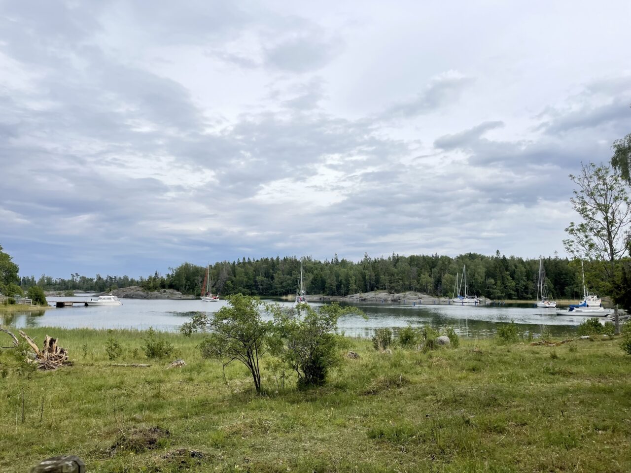 Die Region nördlich von Stockholm bis nach Öregrund und Forsmark heißt Roslagen, und die Stadt ‚Norrtälje‘ gilt als Hauptstadt dieser Schärenregion. Selbige peilten wir an, allerdings gab es auf der Strecke noch eine nach der Beschreibung hübschen Naturhafen, den wir uns anschauen wollten. Und tatsächlich die Bucht ‚Österhamn‘ der Insel Lidö war ein herrliches Plätzchen. Netterweise hat die Schärenverwaltung dort Bojen ausgelegt, an denen man bequem festmachen kann, ohne den Anker werfen zu müssen. Und wenn sich mal was Neues ergibt, dann probieren wir da doch gerne aus. Eine gute Idee wie sich herausstellte, denn auf der Insel gab es hübsche Wanderwege, ein paar Häuschen und ein Café (erst zu Midsommer offen). Wir machten das Beiboot klar und schippterten zum Ufer. Lidö ist wohl im Gegesatz zu den anderen kieferbewachsenen Schären die einzige Schäre auf der vor allem Fichten wachsen. Wir querten die Insel und waren uns einig, dass so ein bisschen Leben im Gegensatz zu den gänzlich unbewohnten Schären auch ganz nett ist. Ein Bauernhof, der früher eine große Pelztierfarm war, bis die Zucht von Pelztieren 2021 in Schweden und Norwegen verboten wurde. Eine kleine Häuschengruppe wo sich gestresste Mütter aus Stockholm erholen können (wohl wie bei uns das Müttergenesungswerk -fällt mir ein dabei: sammelt man da noch in D?) und ein recht luxeriöses Anwesen, das für die Saison chic gemacht wurde. Zurück auf dem Beiboot cruisten wir noch ein bisschen rum, wagten uns (etwas) raus und sahen die Küste mit ihren glattgeschliffenen Felsen mal aus einer ganz anderen Perspektive. Ein bisschen die Zeit vergessen hatten wir und merkten zu spät, dass eine dicke Regenfront in die Bucht zog… auf den letzten Metern zur Troll noch nass geworden, aber sehr, sehr schön wars!