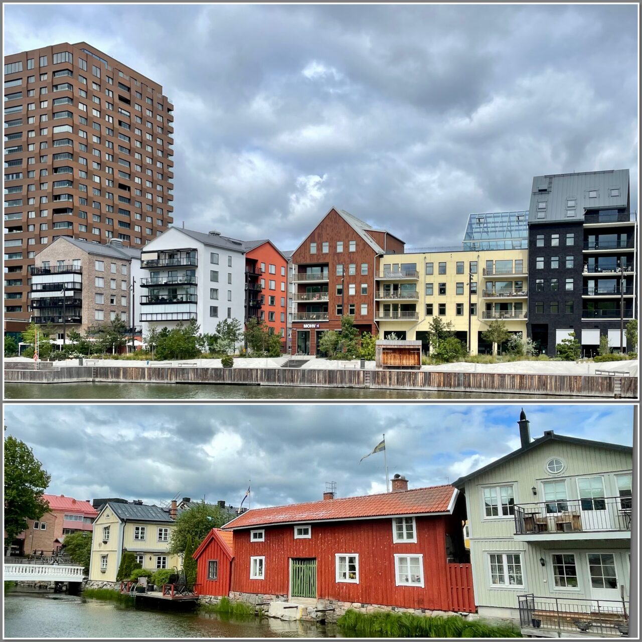 Auch am nächsten Morgen tristes Nieselwetter, deshalb Kurs auf die ‚Hauptstadt‘ Norrtälje. Glück gehabt, einen schönen Längslieger gekriegt und die Sonne kam auch raus. Die nächsten 3 Tage erkundeten wir das Städtchen. Das Hafenareal ist nagelneu und sehr geschmackvoll gestaltet. Die alten Betonsilos sind einer neuen Hafenfront à la Hafencity gewichen. Leider, wie so oft hier in Schweden, architektonisch eher konservativ als avantgardistisch wie in Dänemark und Norwegen. Im Stadtkern wunderhübsche alte rote und gelbe Holzhäuser, ein pittoresker Marktplatz, ein sehr belebte Fußgängerzone, nette Geschäfte und Cafés, viel Kopfsteinpflaster. Nordisch eben. Hier wagten wir das Risiko eines Frisörbesuchs, einmal ‚klippen’ (schneiden) 10 Minuten 28€ …Frisur sitzt! Andreas zahlte 32€, dafür war aber auch ordentlich was abgeschnitten worden 😉. Sehr sehenswert war das Areal oberhalb der Stadt mit dem ‚Pythagoras Industriemuseum‘. Die kleine Kunsthalle zeigte die ambitionierte Fotoausstellung einer der bekanntesten Fotografinnen Schwedens. Insgesamt ein Städtchen, in dem alles was das Herz begehrt vor Ort ist und man sich wohlfühlen kann.