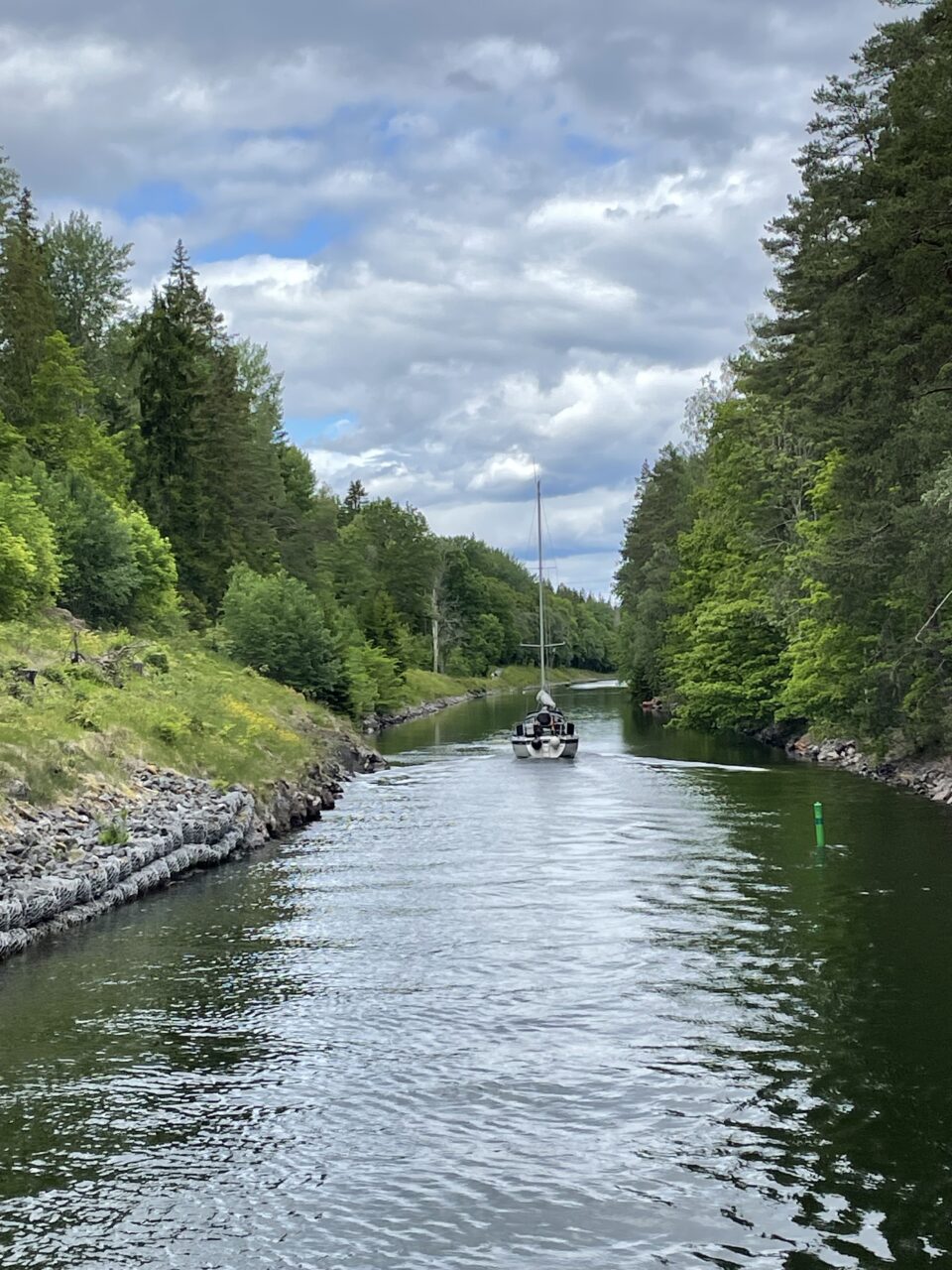 Das heutige Ziel Öregrund der nördlichste Punkt unserer diesjährigen Reise. Heiter bis wolkig, angenehme 21 Grad schipperten wir ‚um die Ecke‘ in den Väddökanal. Zwei Brücken ‚mussten‘ zur stündlichen Öffnungszeit erreicht werden ….Erinnerungsgefühle an die Götakanaltour vor 2 Jahren. Der Wind hatte inzwischen mächtig aufgefrischt. Am Ende des Kanal fegte er mit Böen bis 6 über die freie Wasserfläche. Kurze Umentscheidung und im Hafen ‚Elmsta‘ am Kanalende festgemacht. Muss ja nicht sein sich so durchschaukeln zu lassen. Sehr netter Empfang und Anlegehilfe vom Hafenmeister! Gute Entscheidung! Im Schutz des Betonpiers lagen wir ruhig und sicher und konnten das Wetterspektakel aus sicherer Entfernung betrachten.