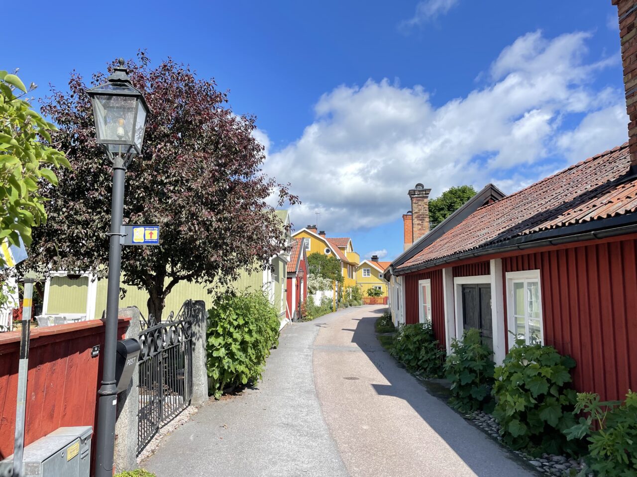 Erste Station Richtung Süden war Östhammar, quasi um die Ecke am Ende eines längeren Sunds gelegen. Auch hier viele sehr gut erhaltene und liebevoll gepflegte Holzhäuschen, alle bewohnt. Sehr unprätentiös. Statt der geplanten Nacht blieben wir 4 Tage, kein weiteres Gastboot im Hafen, trotzdem nicht ausgestorben, sondern belebt und ein sehr netter Hafenmeister. Wir fühlten uns wohl. Unter anderem nutzten wir die Busverbindung in das (über Land) 20 Minuten entfernte Öregrund, nahmen eine der gelben Fähren, setzten über auf die Insel Gräsö und radelten eine Runde. Alles sehr entspannt! Nach 4 Tagen nahmen wir tatsächlich etwas wehmütig Abschied.