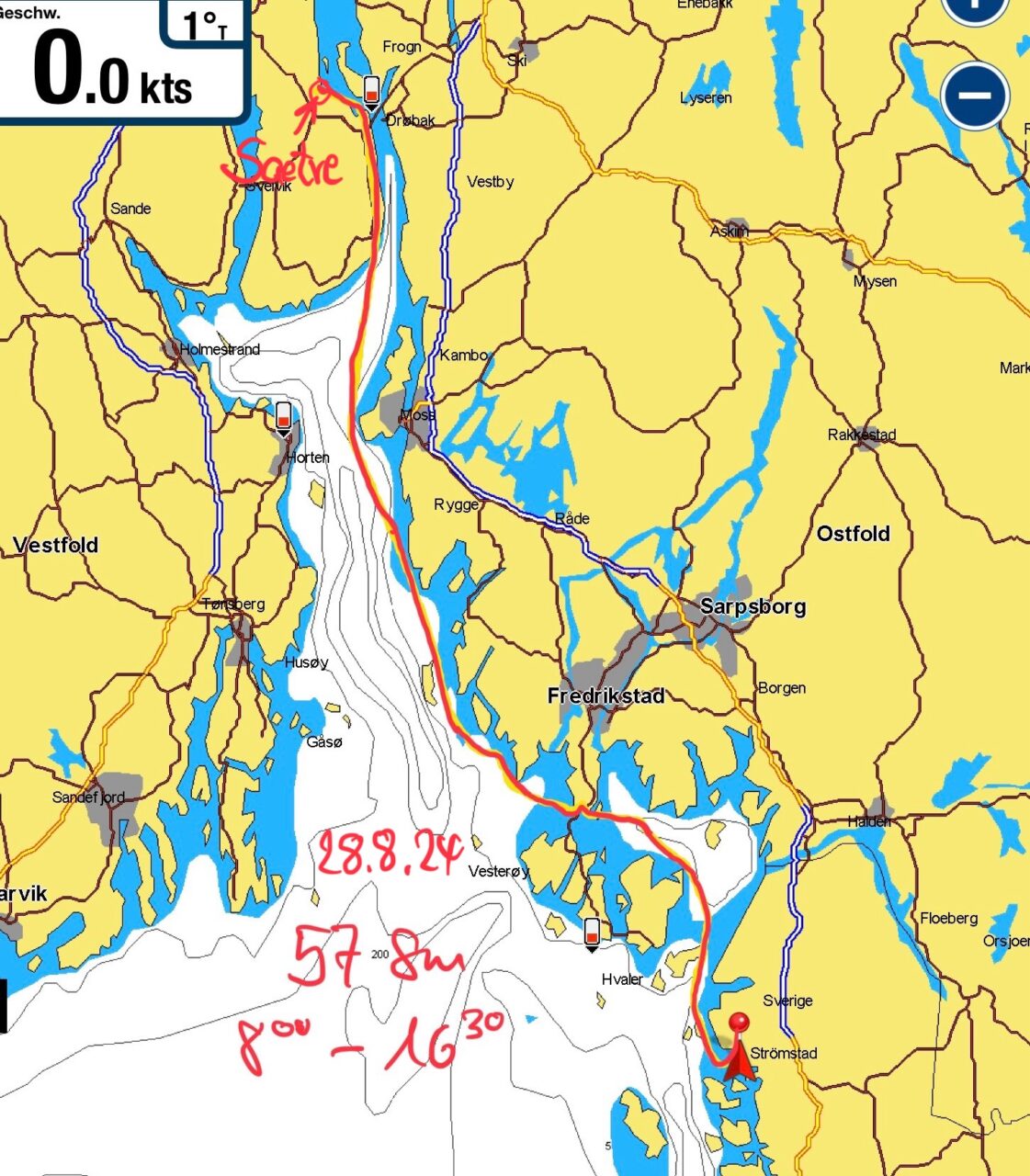 Unsere neue Strategie, um mit Wind&Welle jeglicher Couleur umgehen zu können: nicht EIN Ziel anvisieren sondern mit Plan A,B,C,.. weitere Alternativen bereit zu halten. Der Käpten ventilierte jede Möglichkeit, steckte die Routen ab (verschiedenfarbig!) und los gings. Minimalziel nach aktueller Wettersituation: Moss am Ausgang des Oslofjords. Ziel erreicht, Wetter prima, weiter gings mit Plan ‚B‘: Strömstadt – erreicht. Wir sind wieder in Schweden. Lagen auf der Hinfahrt im Sommer noch Boot an Boot im Hafen, hatten wir diesmal freie Wahl wo immer wir liegen wollten. Lecker Fisch&Chips am Fährhafen in der Abendsonne genossen. Schaun wir mal wies weitergeht.