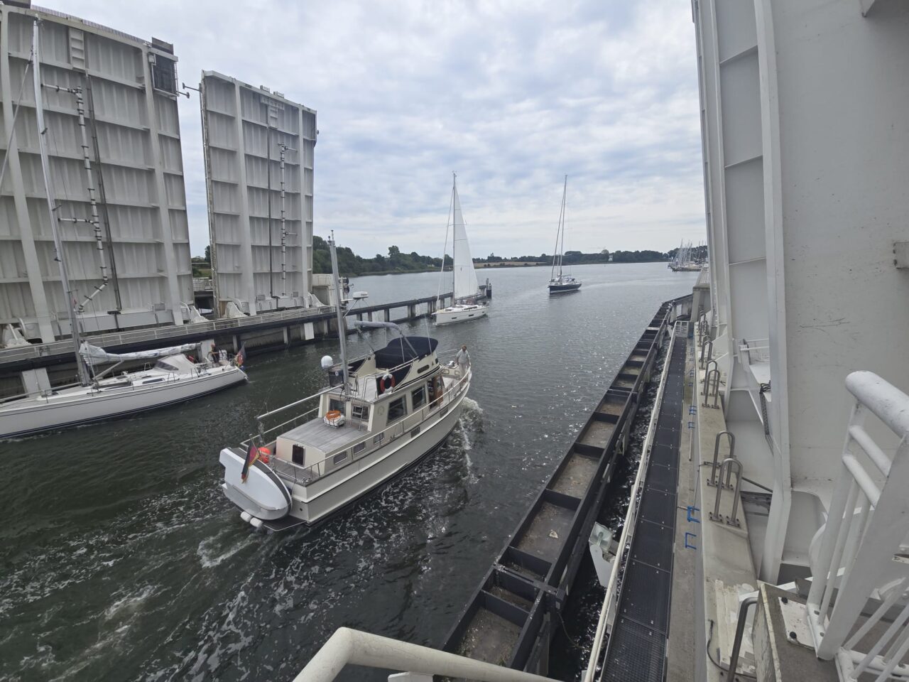 Ja, und am nächsten Morgen unser letzter Schlag Rudkøbing-Kappeln. Ein Katzensprung, bestens getimed vor erneutem Wetterumschwung. Brückenöffnung um 12:40 und Ankunft im Heimathafen 13:00. Bootsfreund Rheinhard empfing uns mit Fanfare, zum Anlegen standen 3 Mann bereit … schön wieder zuhaus zu sein.